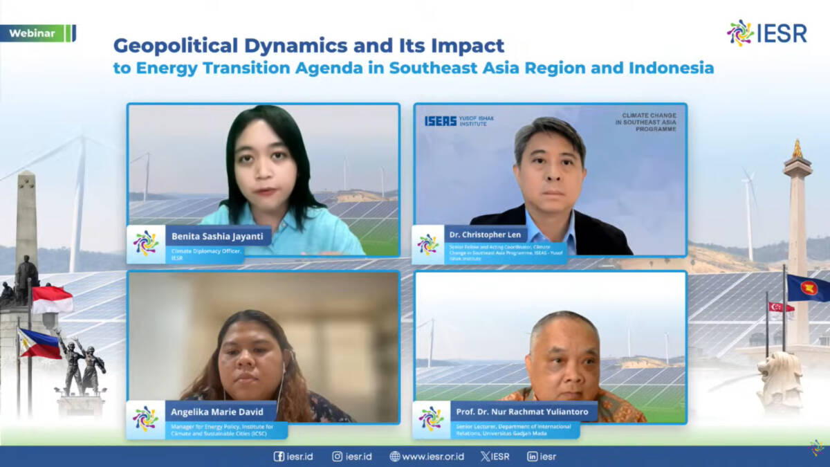 “ASEAN, especially Indonesia’s role in Asian and global forums, can help Indonesia as a country to bridge geopolitical gaps and strengthen South-to-South cooperation to support fair access to climate finance and clean energy technologies,” said Erina in the Webinar on Geopolitical Dynamics and Their Impact on the Energy Transition Agenda in Southeast Asia and Indonesia (12/2).
