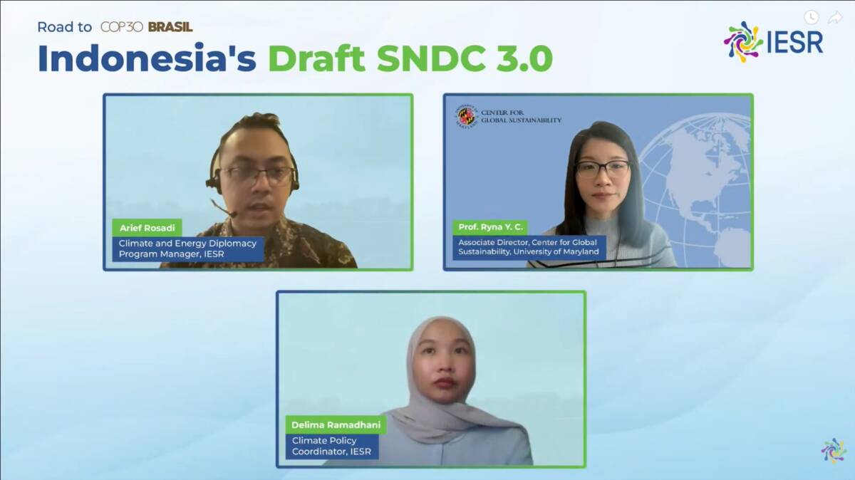 Fabby menyampaikan tiga pilar yang menjadi dasar  untuk Indonesia menetapkan SNDC yang ambisius. Pertama, investasi pada kedaulatan nasional. NDC yang kuat akan melindungi masyarakat pesisir, menjamin ketahanan pangan, air, dan energi, serta memperkuat daya tahan nasional terhadap bencana. Kedua, menciptakan peluang ekonomi. Agar tetap selaras dengan jalur 1,5°C, analisis IESR menunjukkan bahwa bauran energi terbarukan Indonesia perlu mencapai setidaknya 40% pada tahun 2030 dan sekitar 55% pada tahun 2035. Target yang ambisius dapat menarik investasi hijau, mengurangi risiko aset mangkrak akibat ketergantungan pada energi fosil, serta memposisikan Indonesia sebagai pemimpin teknologi energi bersih.